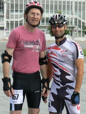 Sobotního závodu na inlajnech se zúčastnil i Jiří.Urban [ M 55 let ]. Zúčastnil se závodu na 10 000m. Byl to jeho první životní závod po čtyrnácti dnech speciálního tréninku na nových bruslích. K tomuto závodu se připravoval pod dohledem Marcela Nemčeka - jednoho ze zakladatelů Sped Scating Club Otrokovice. 10km zajel za 25:54,7min