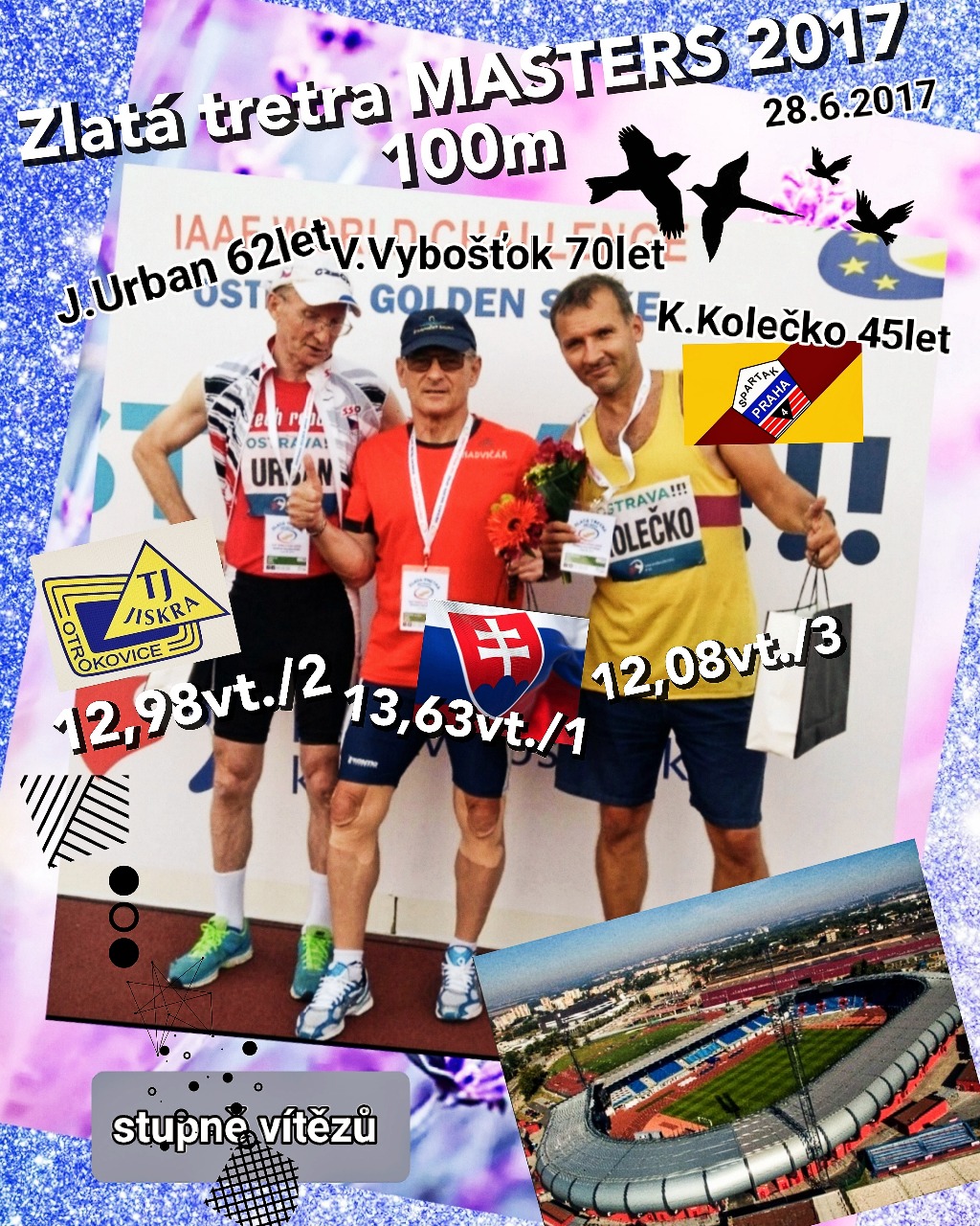 Z naší TJ Jiskra Otrokovice dostal pozvání na vložený závod veteránů na 100m Jiří Urban (63let). Závod byl zařazen do hlavního programu. Časem 13,58vt. se umístnil na 4. místě.